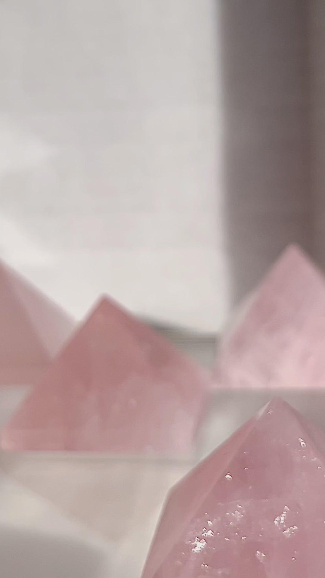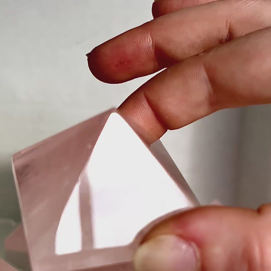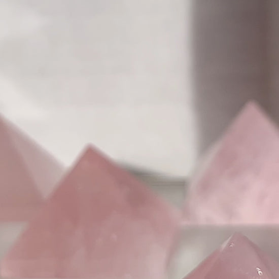 Each pyramid is precisely cut and polished to a fine finish, allowing light to glide across its faces while showcasing natural inclusions, clouding, or clarity unique to each stone. Whether it’s for symmetry in your space, a thoughtful gift, or a reminder to slow down, this rose quartz piece offers both form and story.